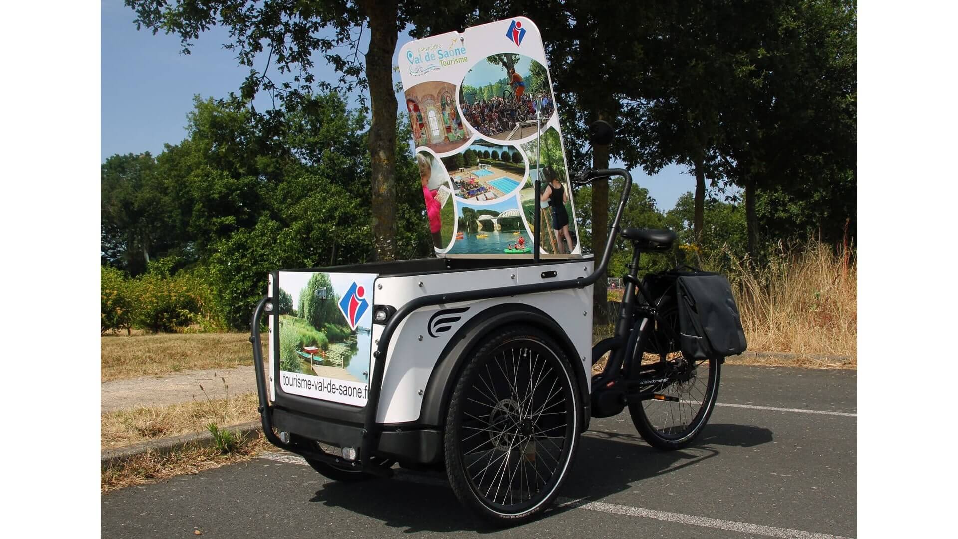 À l'avant, une large caisse permet d'installer confortablement 1 à 8 petits passagers selon les modèles, ou de charger facilement du matériel (voir la rubrique vélo professionnel).