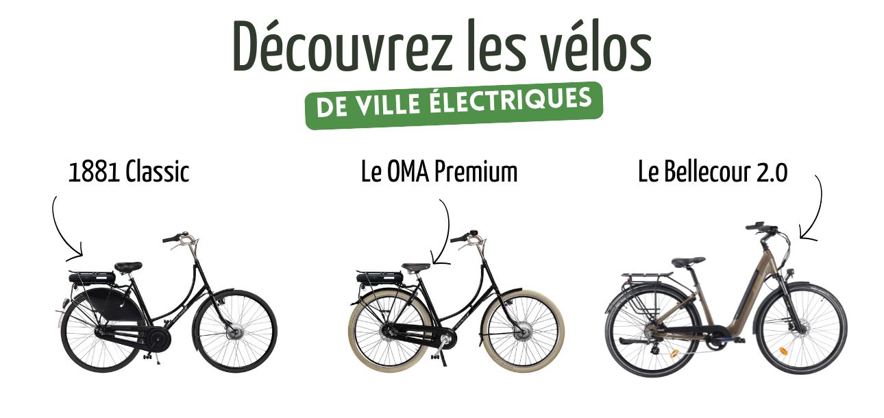 Si votre budget est limité et que vous comptez rouler dans une ville avec peu de relief, nous vous conseillons de vous tourner vers notre les modèles Opa, Oma, 1881 et Park de la marque néerlandaises AZOR. Ces authentiques vélos hollandais offrent un rapport qualité prix imbattable. Si vous souhaitez un vélo électrique avec fabriqué et assemblé en France, le modèle Bellecour 2.0 et le modèle électrique Chantenay sont deux excellents choix.