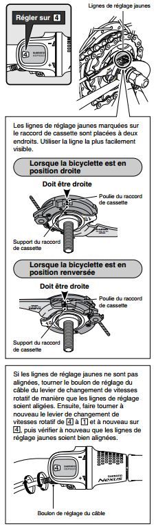 Vos vitesses passent mal ? Vous avez besoin de remettre un raccord de cassette sur une boîte Nexus 5, 7 ou 8 ? Retrouvez ci-dessous quelques instructions pour mener à bien le réglage de vos vitesses ou encore le montage de votre raccord de cassette Shimano Nexus !