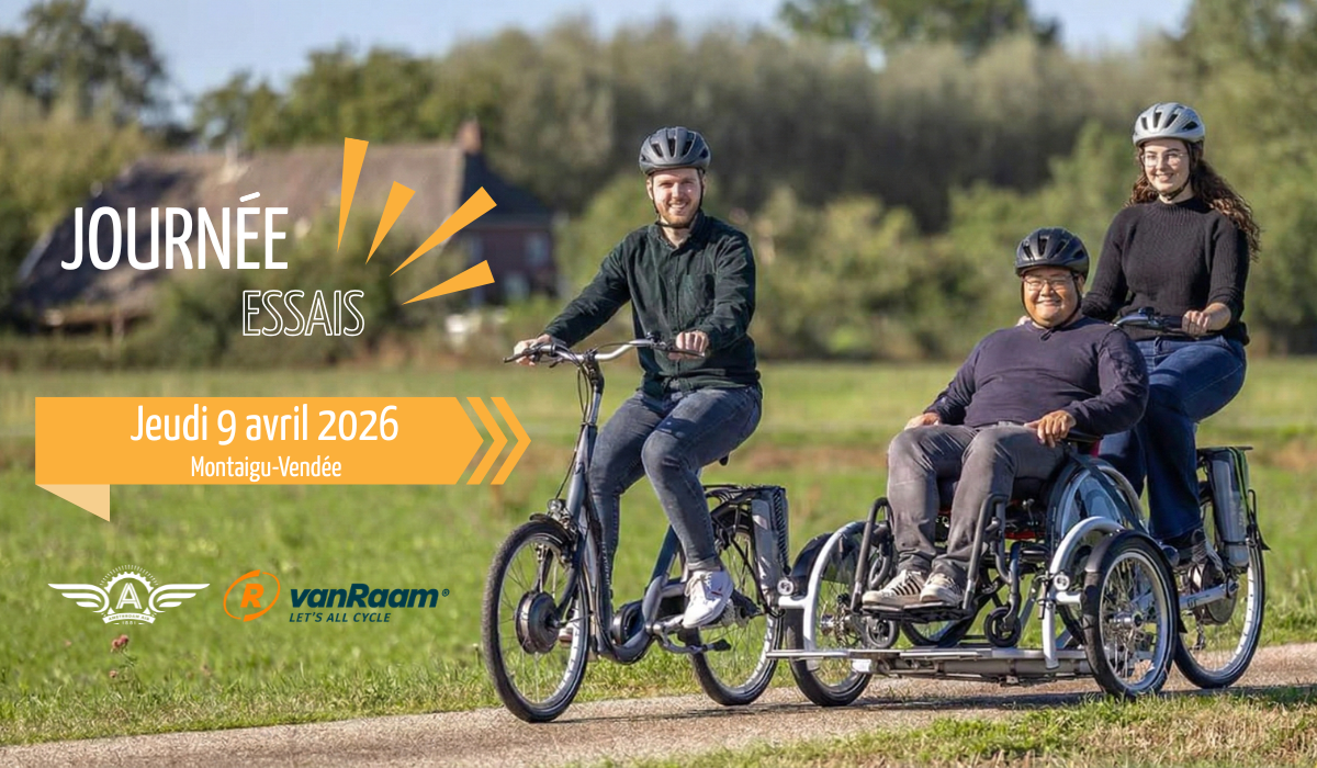 Le jeudi 9 avril, de 9h à 18h, notre showroom prend un accent hollandais en accueillant exceptionnellement vanRaam, le plus grand fabricant de vélos adaptés. Nous vous donnons rendez-vous au 4 rue Augustin Fresnel à Montaigu pour découvrir, échanger et surtout tester une gamme de vélos conçus pour offrir plus de liberté et de plaisir au quotidien.