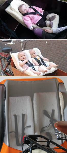 Dans un triporteur Bakfiets bimoteur, vous pouvez transporter en effet jusqu’à 6 petits enfants dans la caisse avant et ajouter un enfant sur un siège fixé au porte-bagage arrière.