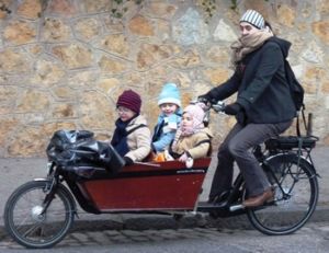 Je voudrai pouvoir mettre mes 4 enfants dans la caisse du biporteur et je pense que la banquette avant peut être partagée entre deux petits (lorsque le dernier saura bien se tenir assis). Mes enfants étant très rapprochés, les trois aînés pèsent moins de 50 kg en cumulé. Je pense que cela ne poserait donc pas de problème de charge a moyen terme. Il me faudrait juste un harnais supplémentaire a installer ».