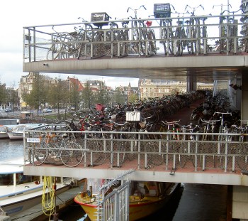 En bas, photo d’un petit bout du parking à vélo de la gare d’Amsterdam.