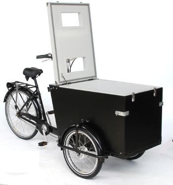 Ce triporteur actuellement en test est conçu avec une caisse isotherme et des plaques eutectiques qui permettent de maintenir plusieurs heures une température inférieure à 18°C.