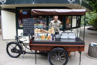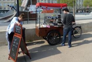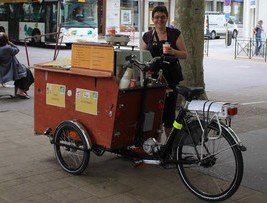 Vous la croiserez toutes les fins de semaine à Nantes : la très petite librairie Suc&Chou fait ses premières sorties, sur un biporteur Amsterdam Air, retravaillé pour l'occasion.